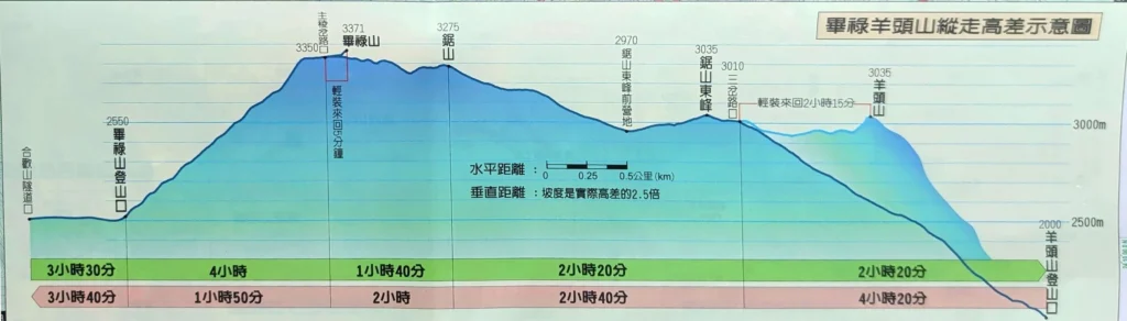 羊畢縱走坡度圖